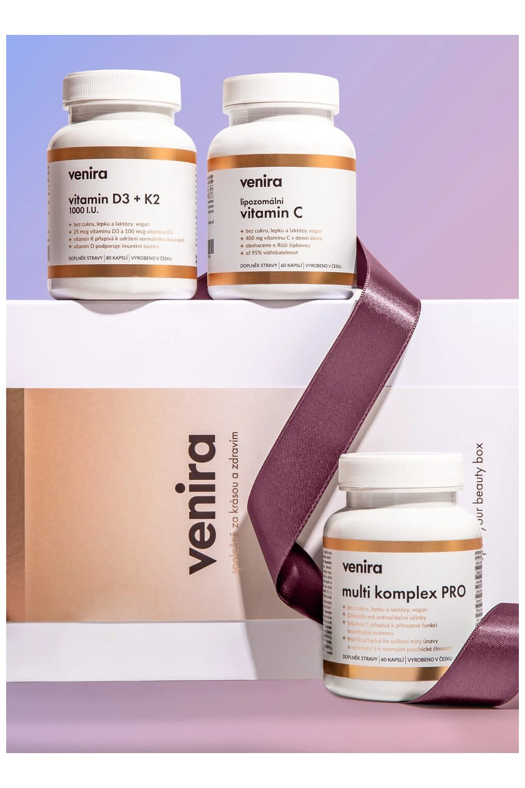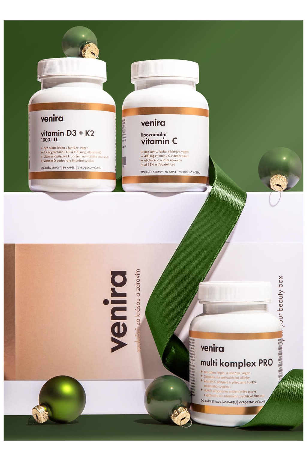 VENIRA dárková sada vitamin & immuno booster vitamin D3+K2, multi komplex PRO, lipozomální vitamin C