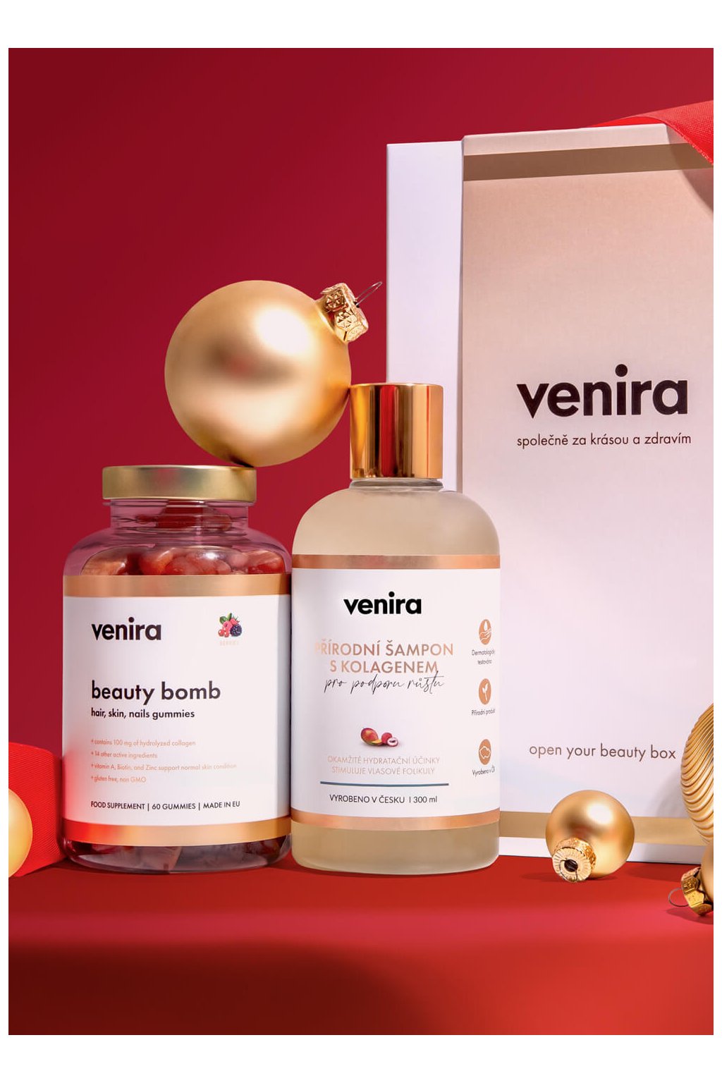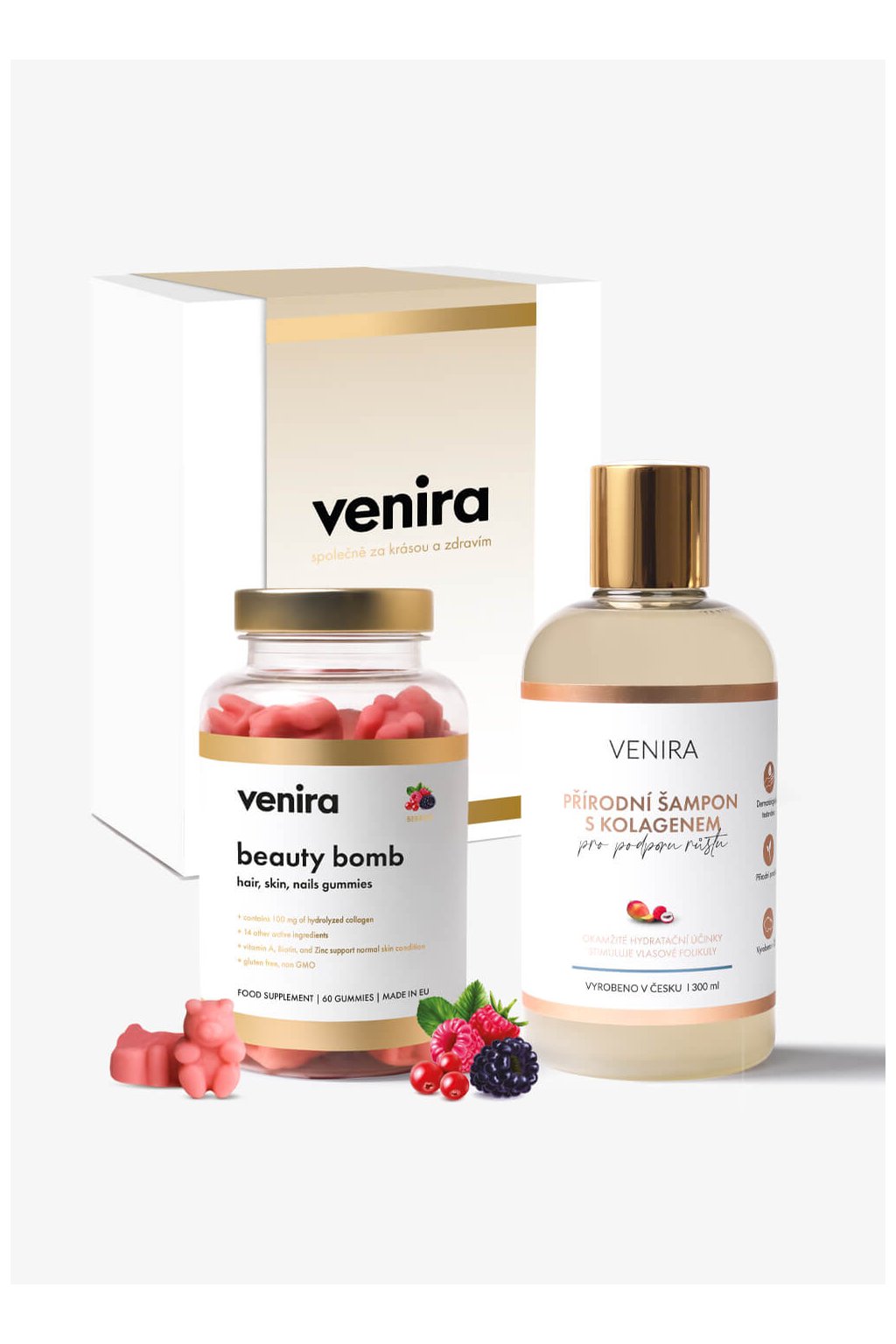 VENIRA dárková sada medvídci & šampon s kolagenem beauty bomb a šampon s kolagenem