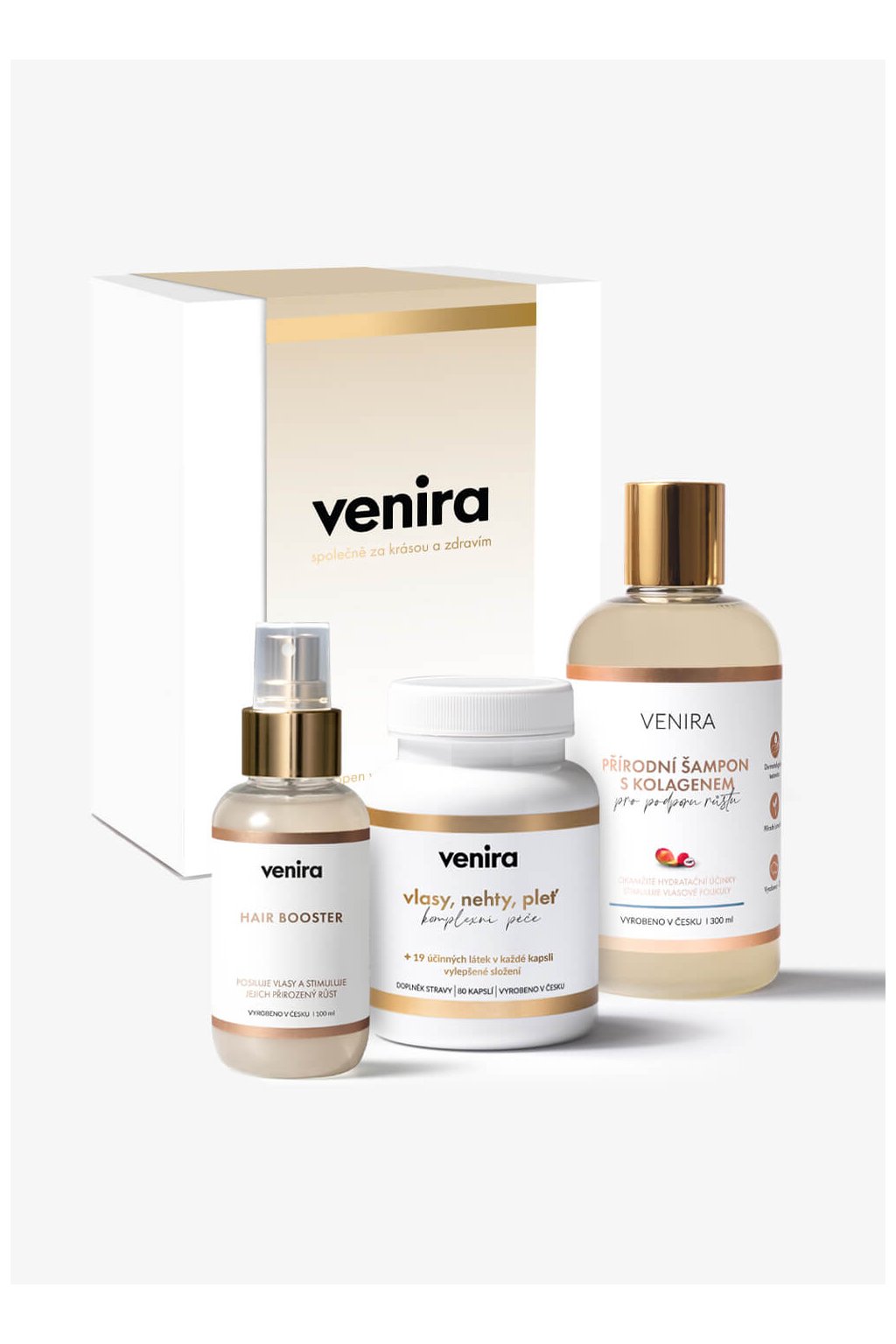 VENIRA dárková sada podpora růstu vlasů hair booster, kapsle pro vlasy, šampon s kolagenem pro podporu růstu