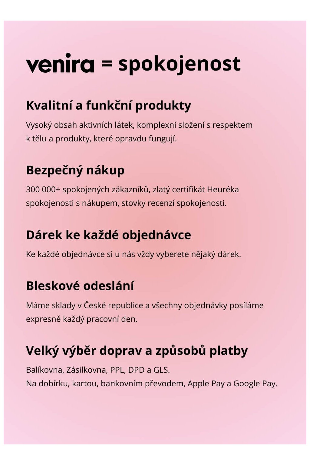 VENIRA krásná prsa doporučujeme užívat v kombinaci s VENIRA kapslemi pro vlasy, nehty a pleť, které obsahují 19 aktivních látek v každé denní dávce. Pokud vás trápí i strie na prsou, vyzkoušejte náš VENIRA krém proti striím se sladkou vůní maliny.