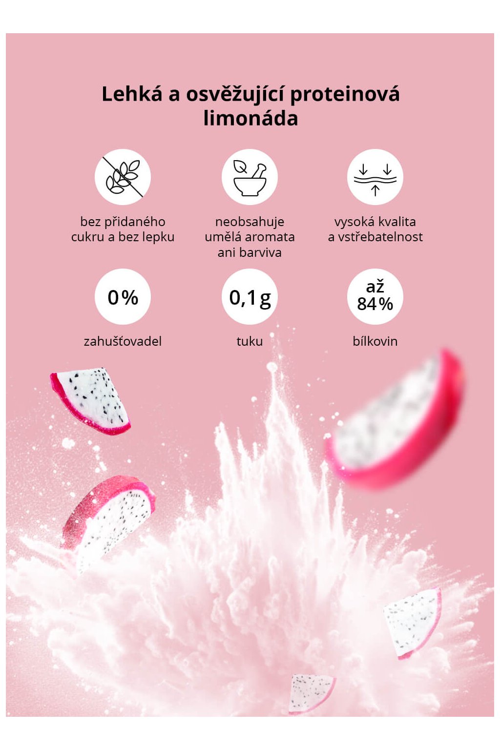 Bezmléčná ovocná proteinová limonáda s více než 84 % vysoce kvalitních bílkovin bude skvělá nejen po náročném tréninku, ale i jako nutričně bohaté osvěžení kdykoliv během dne.