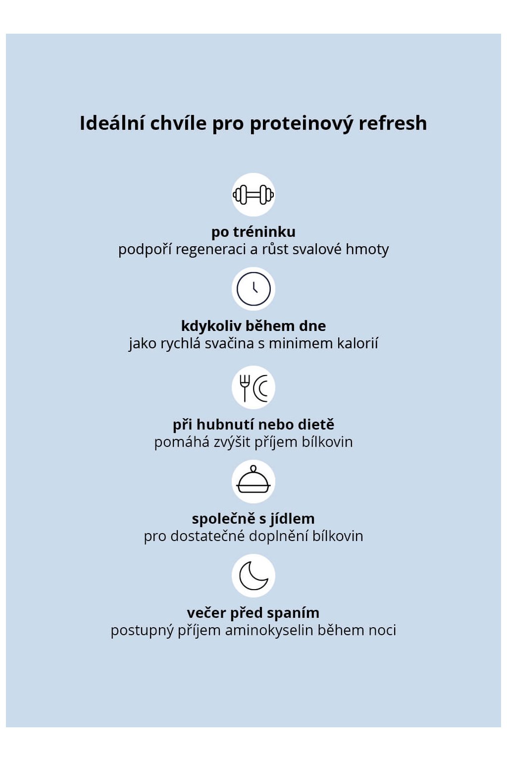 Před spaním - zajistí noční regeneraci a plynulý přísun aminokyselin i během spánku.