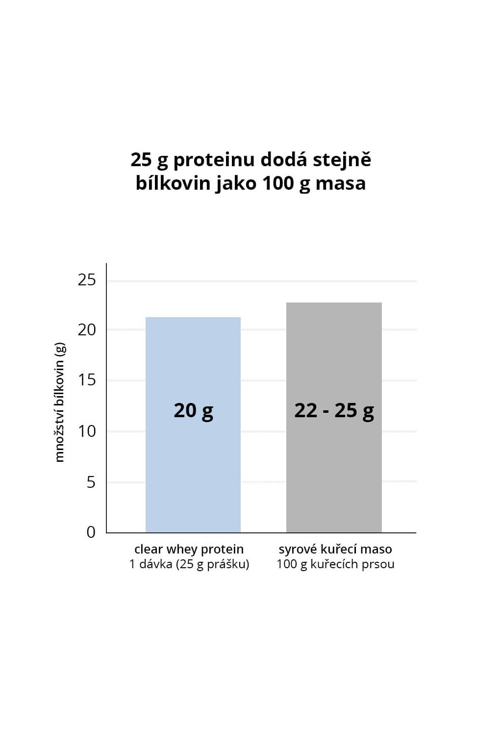 Clear whey protein je nejen účinný pro budování, udržení a regeneraci svalové hmoty, ale i maximálně šetrný k trávení. Během filtračního procesu jsou odstraněny všechny neproteinové složky, včetně většiny laktózy, tuků a zbytkových cukrů. Proto u proteinu nehrozí žádné nadýmání, zatěžování žaludku ani trávicího traktu.