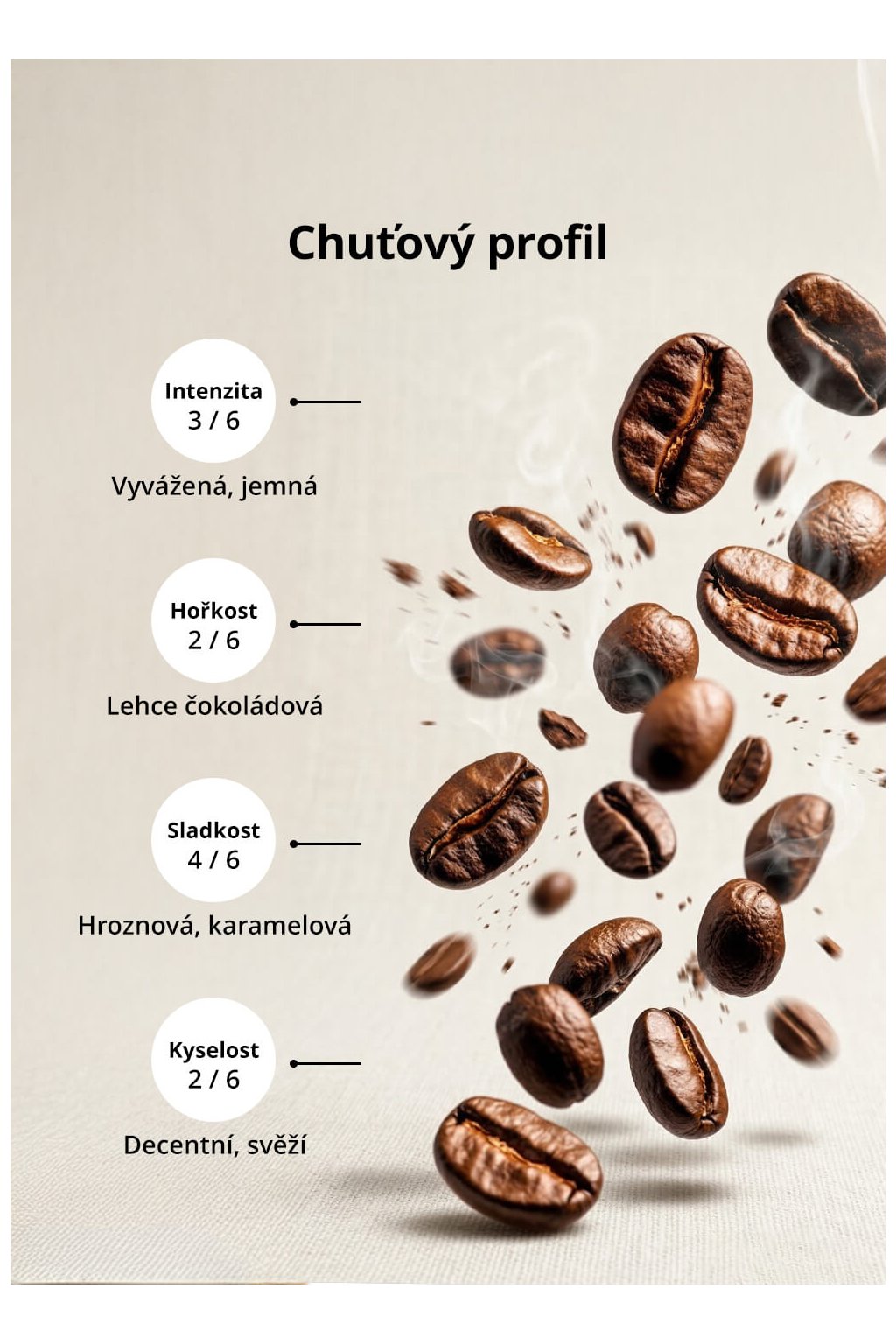 - střední level pražení pro harmonickou chuť bez výrazné hořkosti