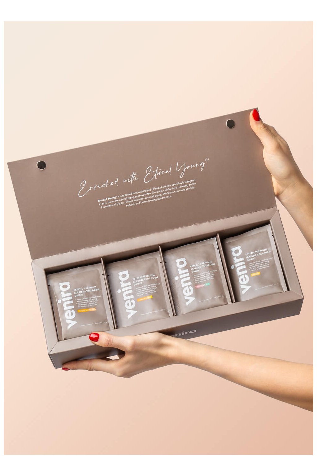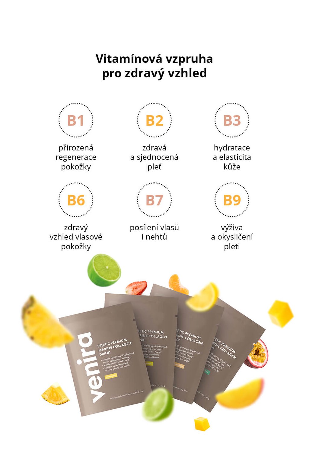 • revoluční prémiový kolagenový drink speciálně navržený pro krásu a přirozenou vitalitu pleti, vlasů i nehtů