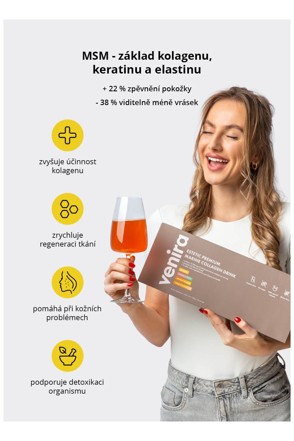 • revoluční prémiový kolagenový drink speciálně navržený pro krásu a přirozenou vitalitu pleti, vlasů i nehtů