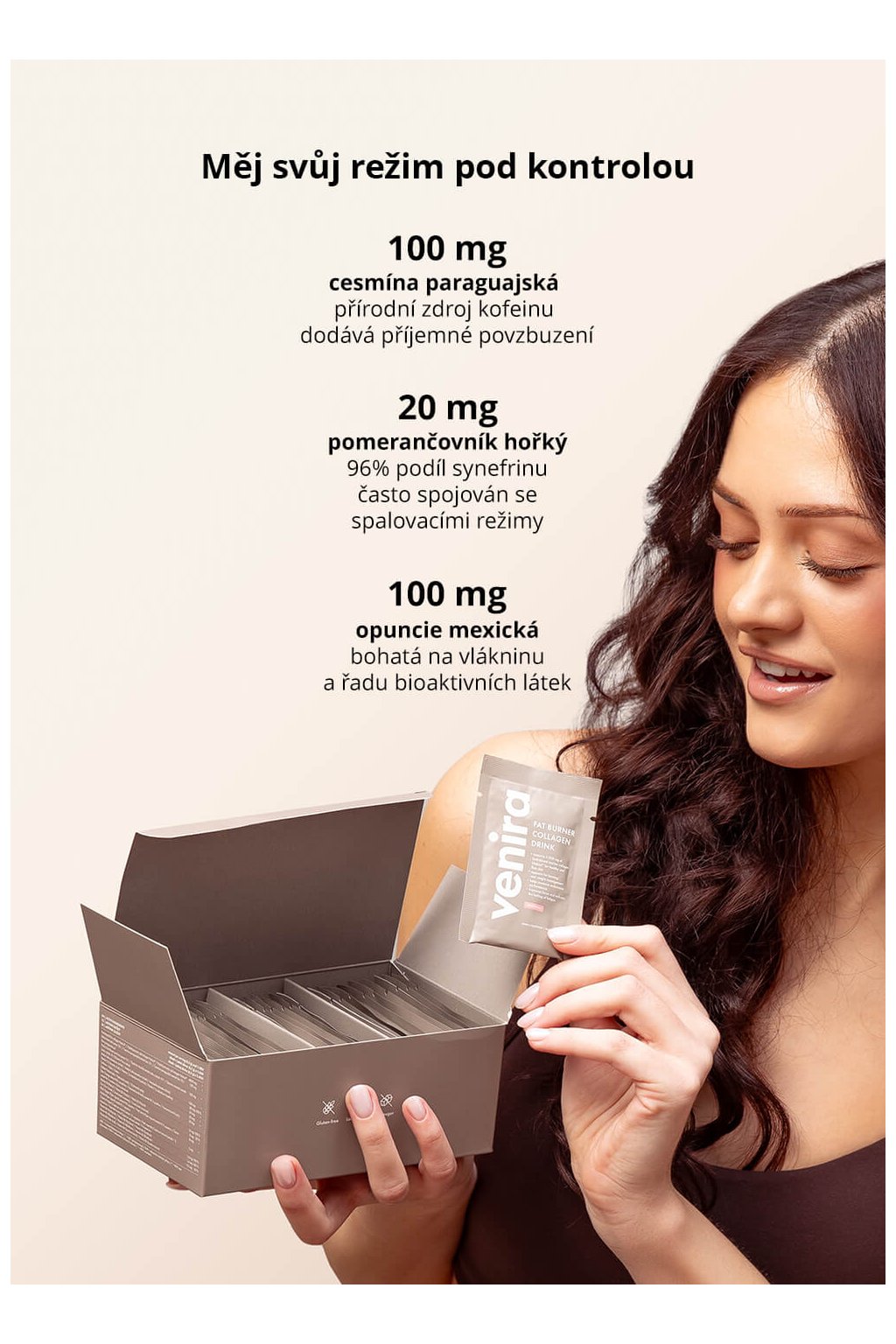 VENIRA fat burner collagen drink - vzorek jahoda, mořský kolagen, 6,3 g