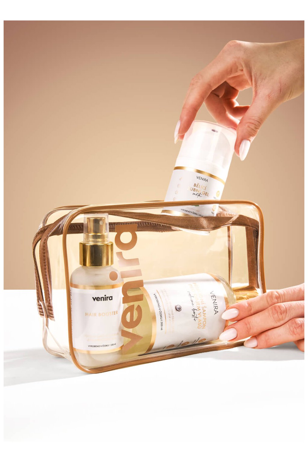 VENIRA kosmetická taška průhledná, béžová, vel. XL