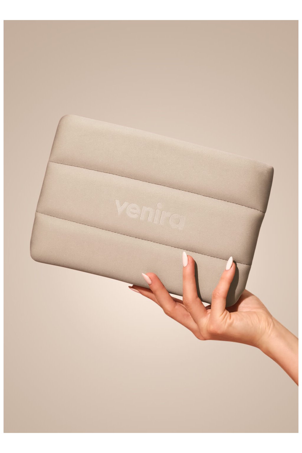 Kosmetická taška je vyrobena z kombinace neoprenu, polyesteru a nylonu - tří materiálů, které spojují odolnost, lehkost a dlouhou životnost. Neopren dodává taštičce pružnost a pevnost, díky nimž bez problému zvládne každodenní používání a zachová si tak stále svůj tvar. Navíc je voděodolná, takže přirozeně odpuzuje vlhkost i kapky vody tak, aby kosmetika uvnitř zůstala vždy chráněná. Polyester jí propůjčuje lehkost, zatímco nylon posiluje švy a přispívá k celkové stabilitě konstrukce.