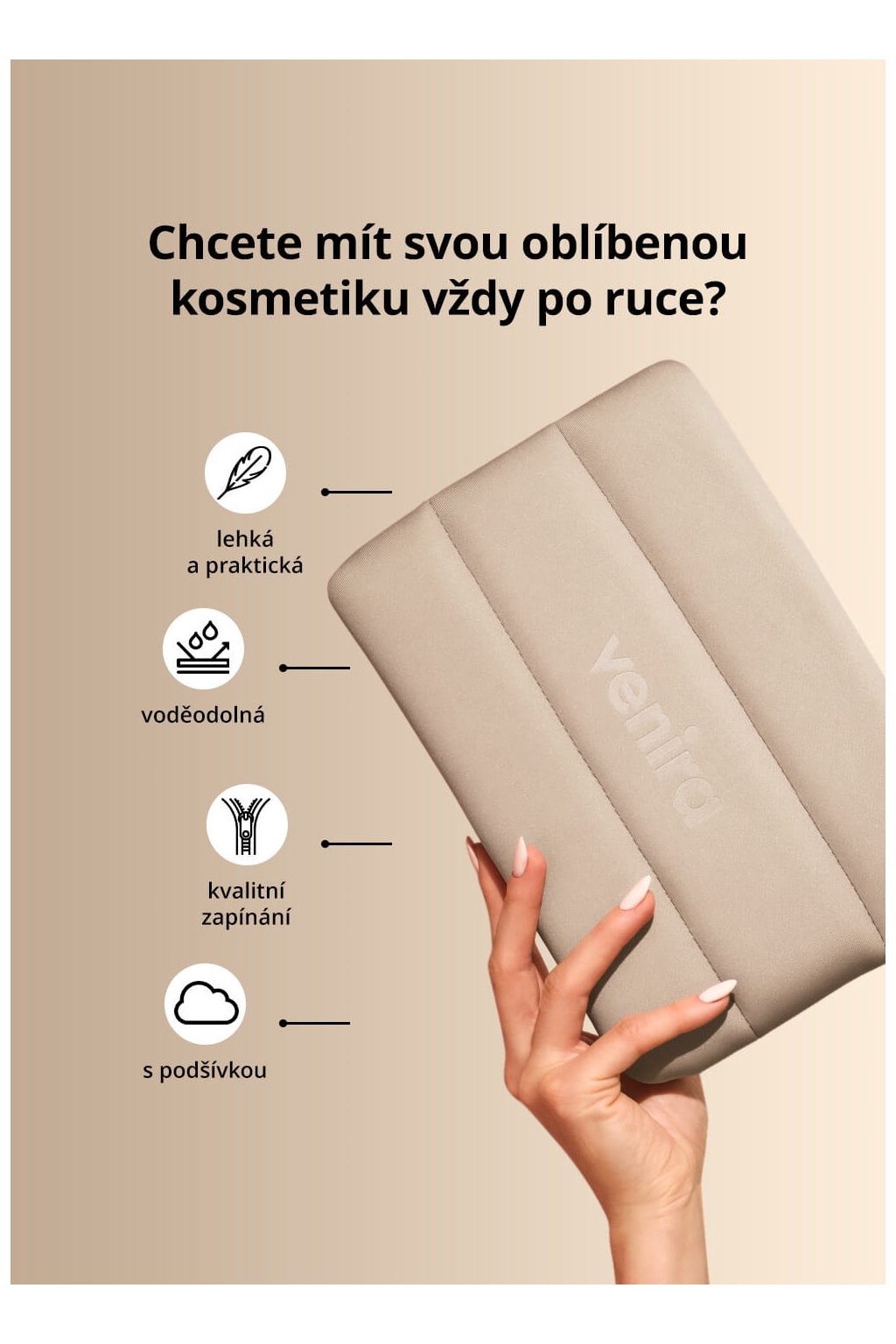 Stylová a minimalistická kosmetická taška s podšívkou, která je navíc lehká a voděodolná, jednoduchá údržba.