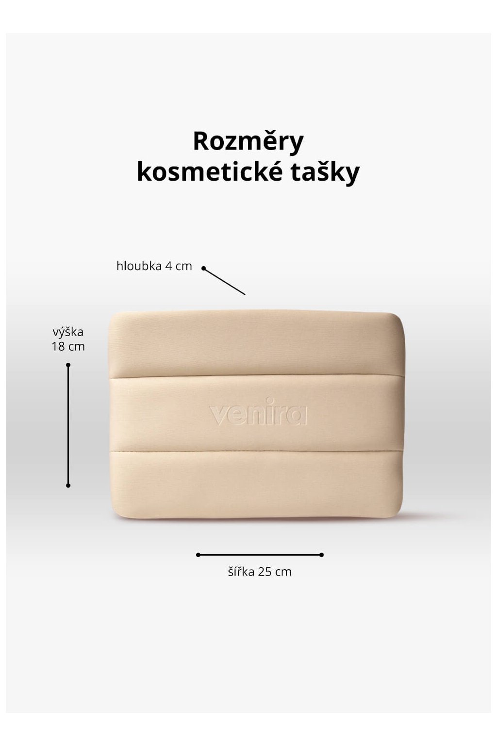 Taška zaujme svým jedinečným nadýchaným vzhledem, který působí moderně a elegantně, a zároveň potěší množstvím dalších detailů. Díky praktickým rozměrům 25 x 4 x 18 cm je dokonale kompaktní - snadno se vejde do kabelky i cestovní tašky, a přesto nabídne dostatek prostoru na všechny nezbytnosti. Uvnitř se nachází jemná žerzejová podšívka a kvalitní zipové zapínání zajistí bezpečné uložení obsahu.