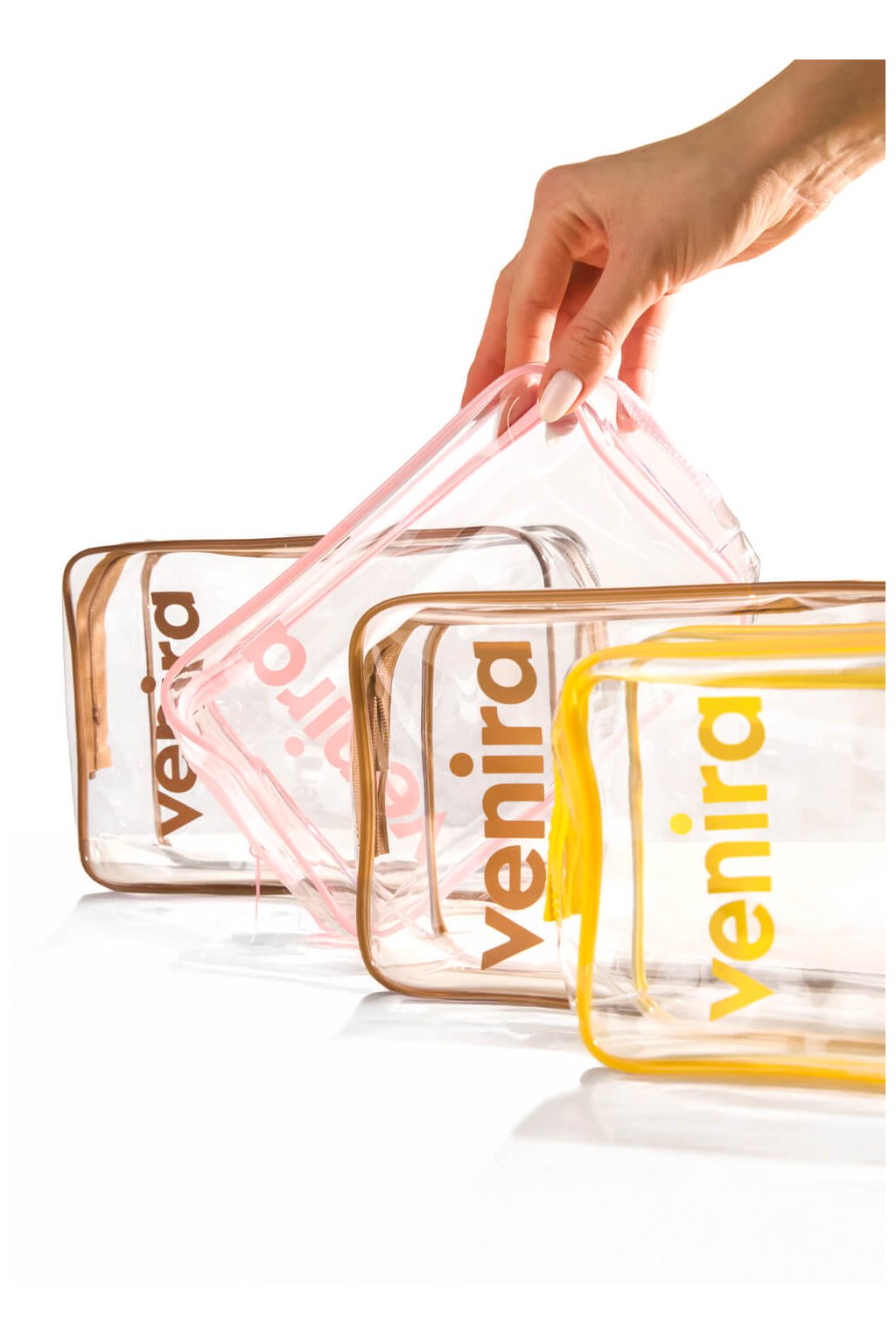 VENIRA kosmetická taška průhledná, hnědá, vel. L