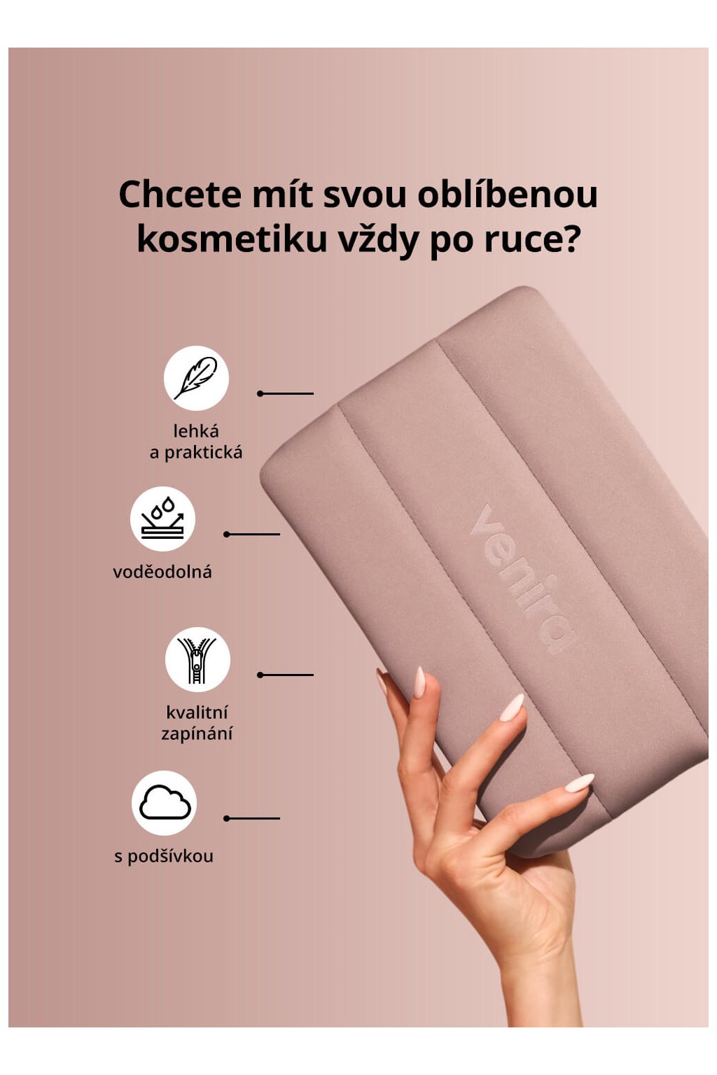 • stylová, odolná a praktická kosmetická taška na zip