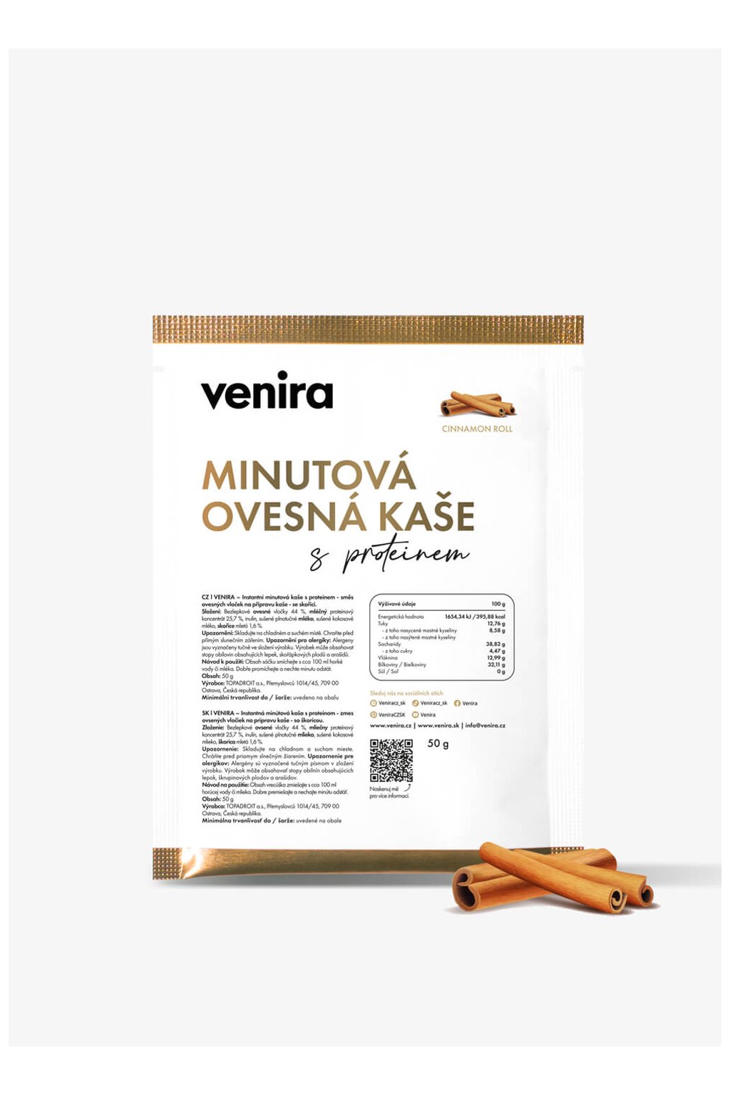 VENIRA minutová ovesná kaše s proteinem - vzorek cinnamon roll, 50 g