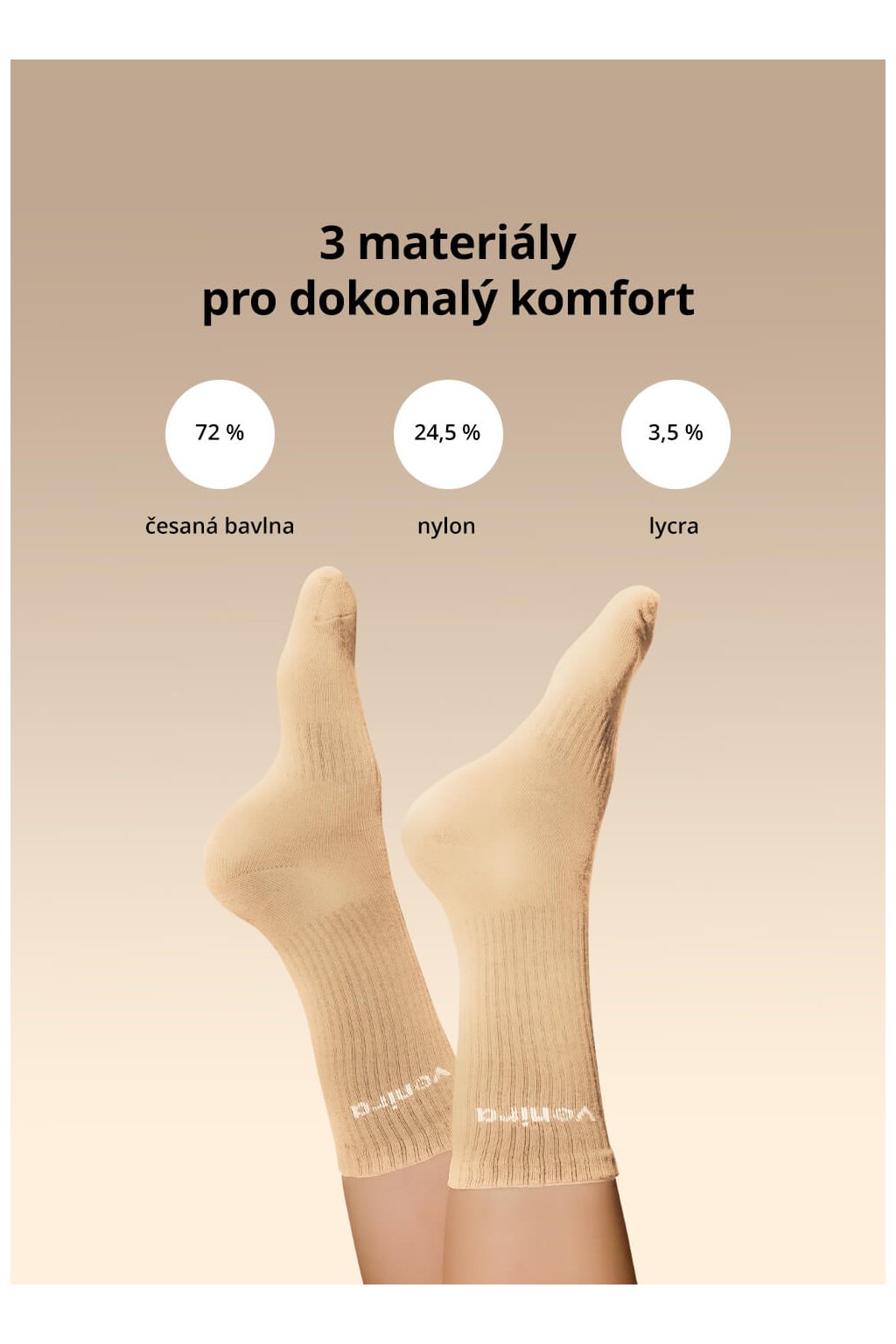 ## 72 % česaná bavlna, 24,5 % nylon, 3,5 % lycra, žebrovaný lem, prodyšné, odolné a pružné. ##  NOVINKA  stylové a maximálně pohodlné ponožky pro každodenní...