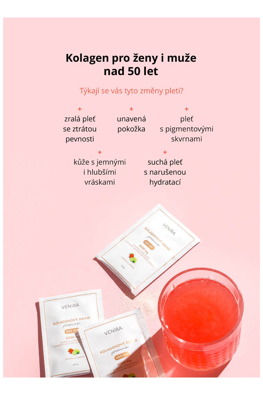 • jeden z nejsilnějších prémiových kolagenových drinků na trhu vyvinut speciálně pro osoby nad 50 let
