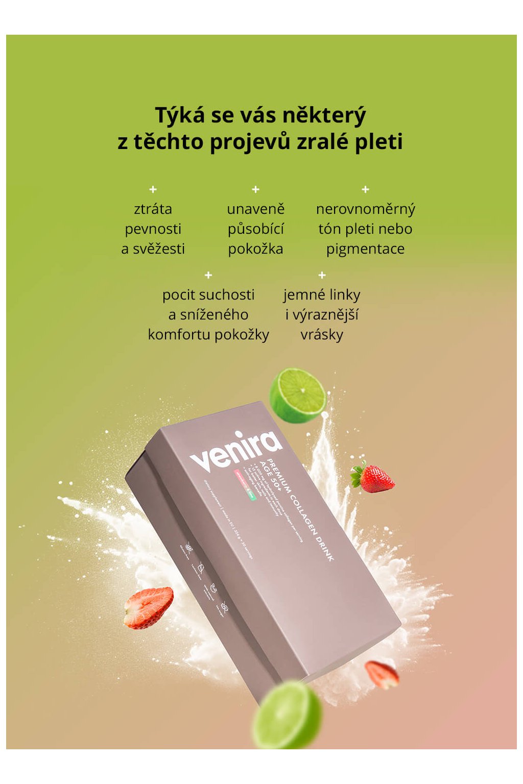 VENIRA PREMIUM kolagenový drink pro vlasy, nehty a pleť, age 50+ jahoda-limetka, 60 sáčků, 648 g