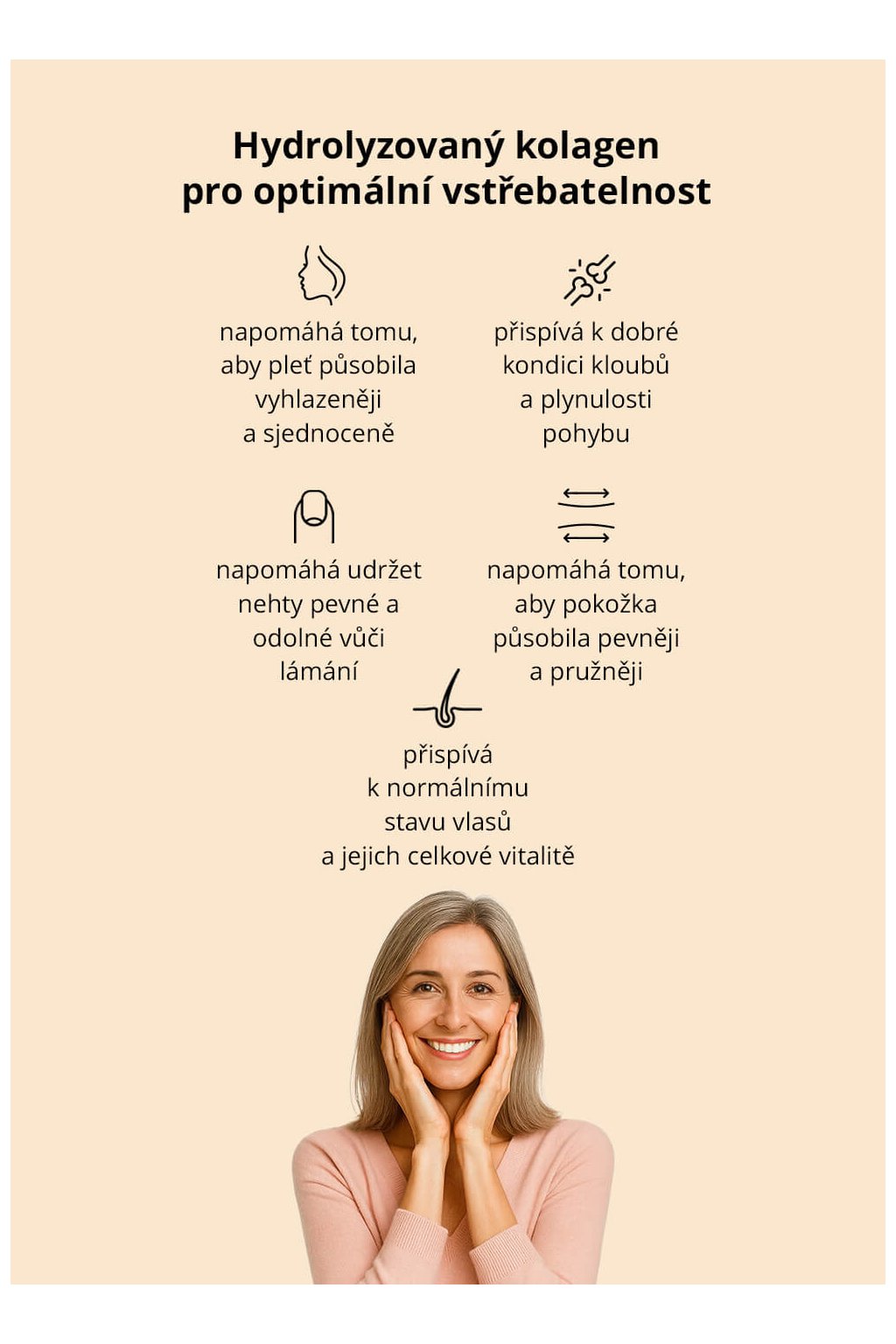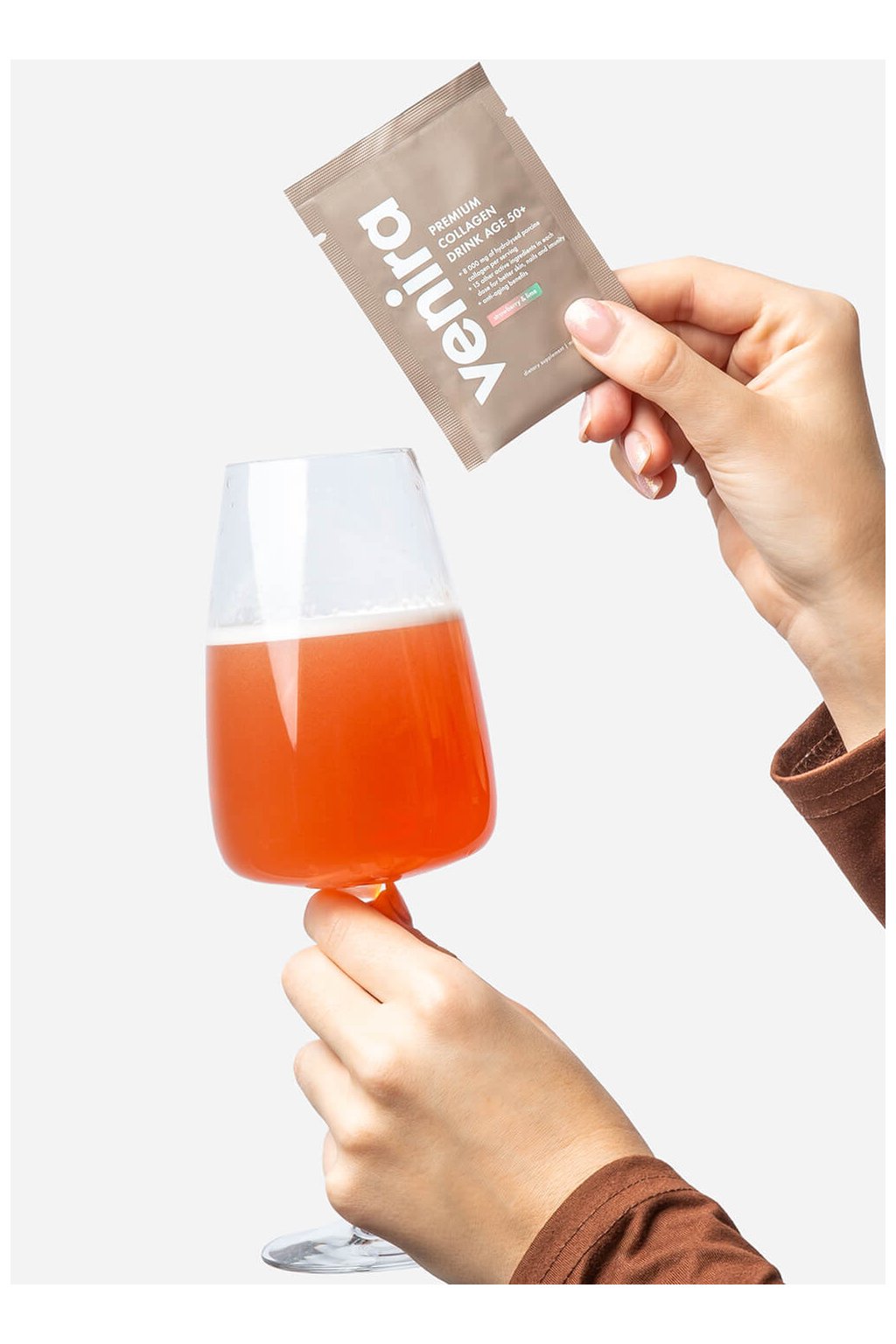 Vepřový kolagen, obsažený v nápoji je díky procesu enzymatické hydrolýzy naštěpen na malé pepitdy, které organismus snadno využívá jako součást každodenní kolagenové péče. S přibývajícím věkem přirozená tvorba kolagenu v těle postupně klesá, a proto dává smysl doplnit jídelníček o jeho kvalitní zdroj, obzvlášť po padesátce, kdy ženy i muži začínají klást větší důraz na podporu svého vzhledu a celkové kondice.