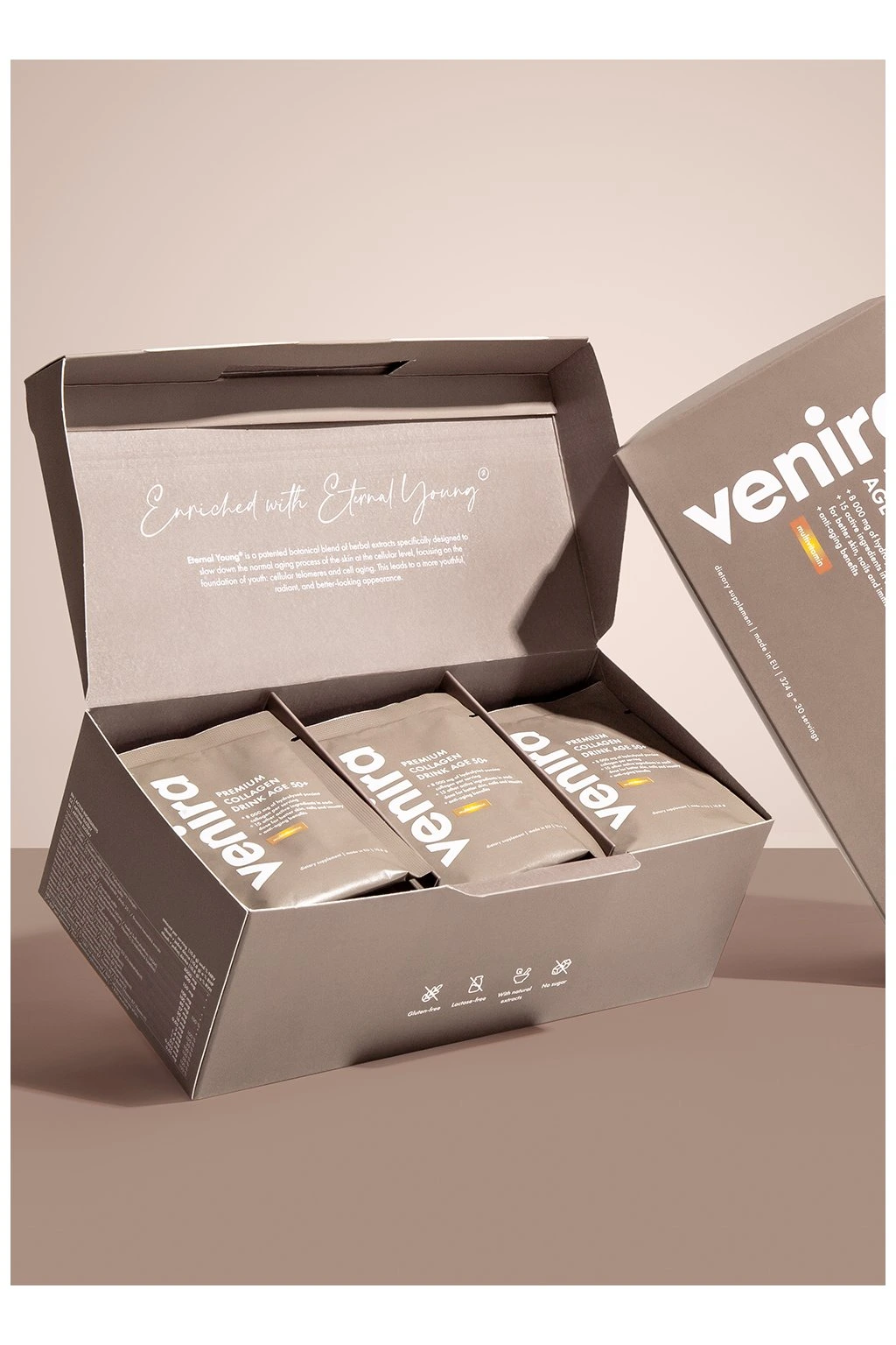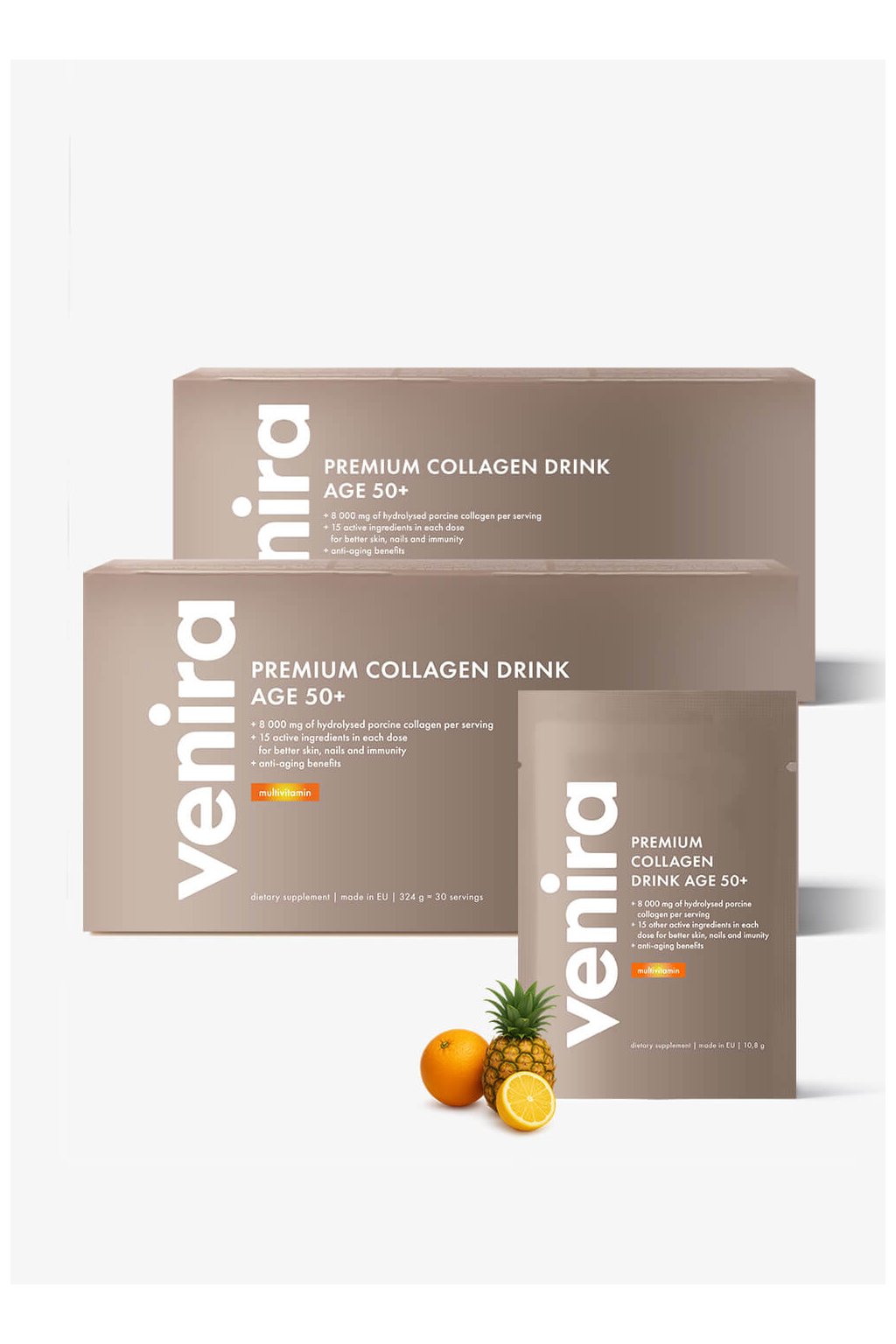 VENIRA PREMIUM kolagenový drink pro vlasy, nehty a pleť, age 50+ multivitamin, 60 sáčků, 648 g
