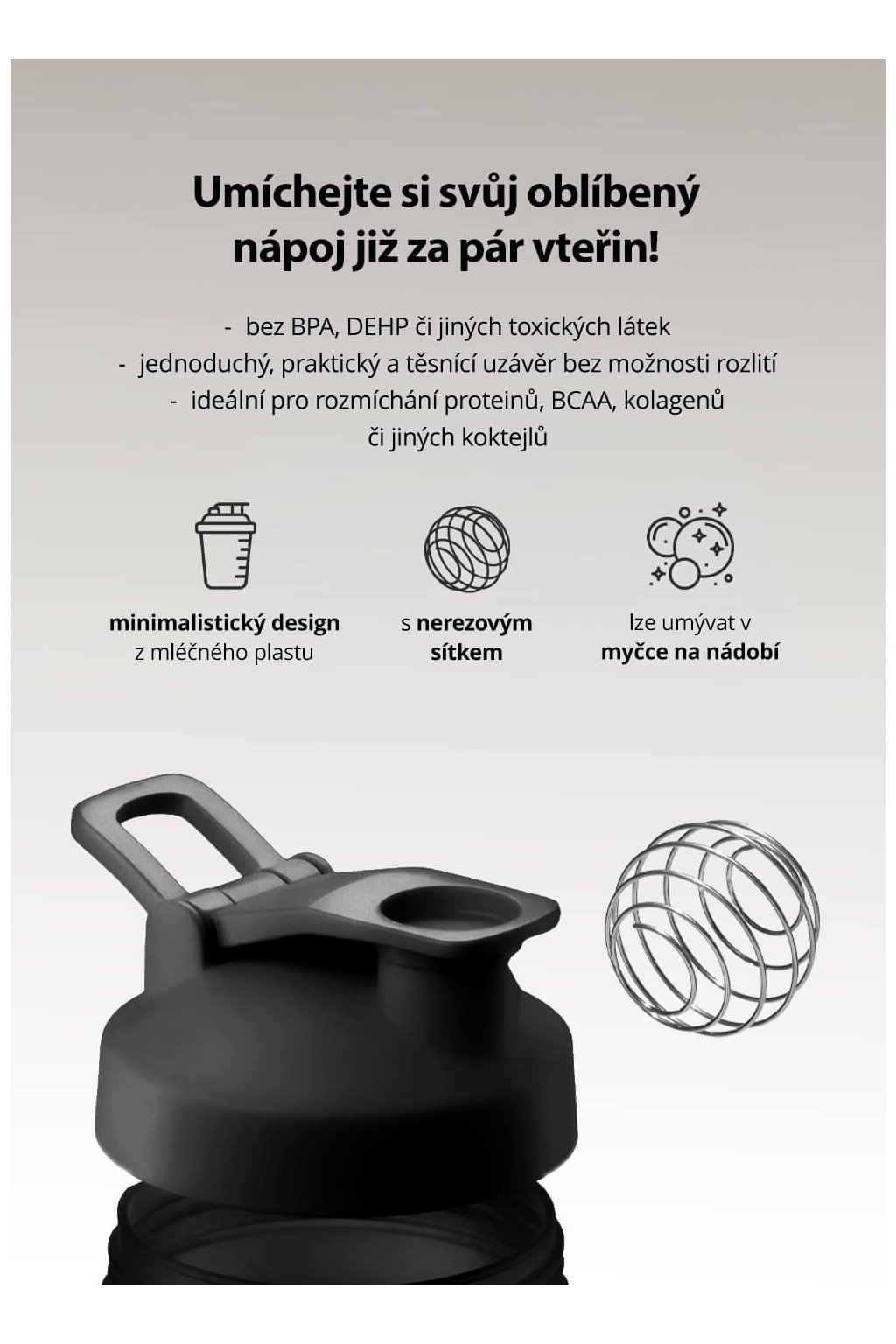 - ideální pro rozmíchání proteinů, BCAA, kolagenů či jiných koktejlů