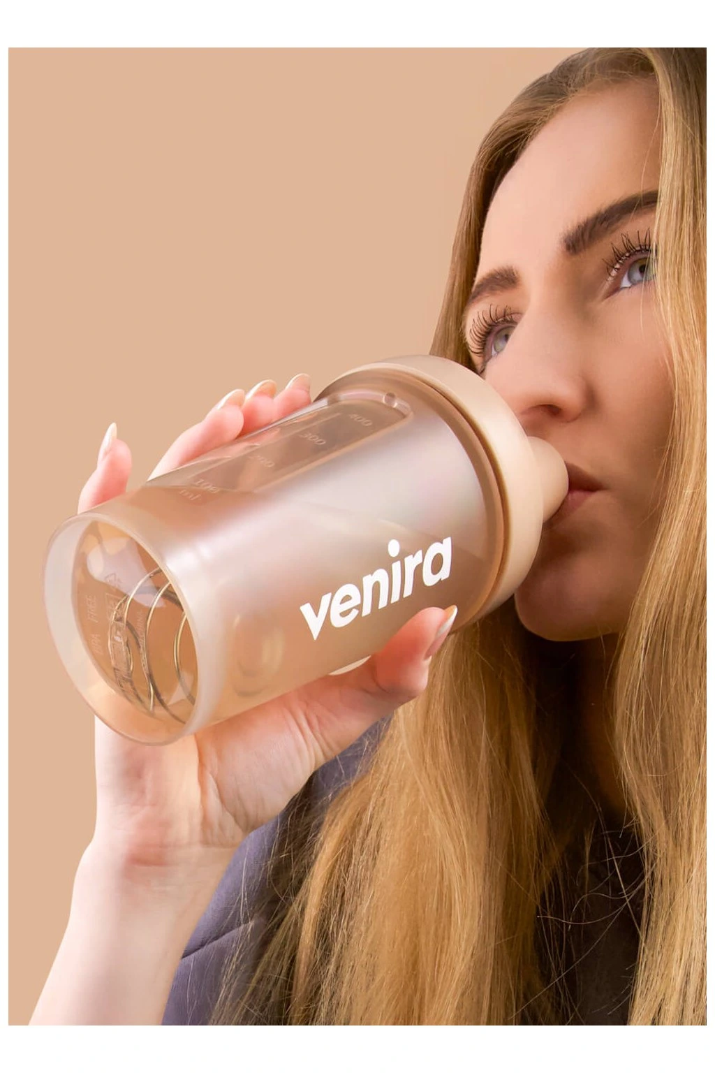 VENIRA shaker PRO s poutkem, světle hnědý 400 ml