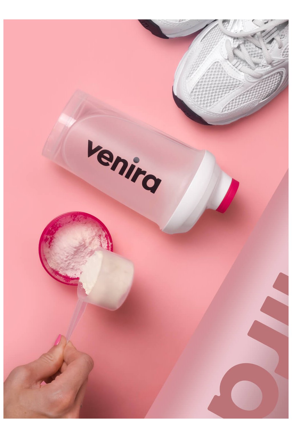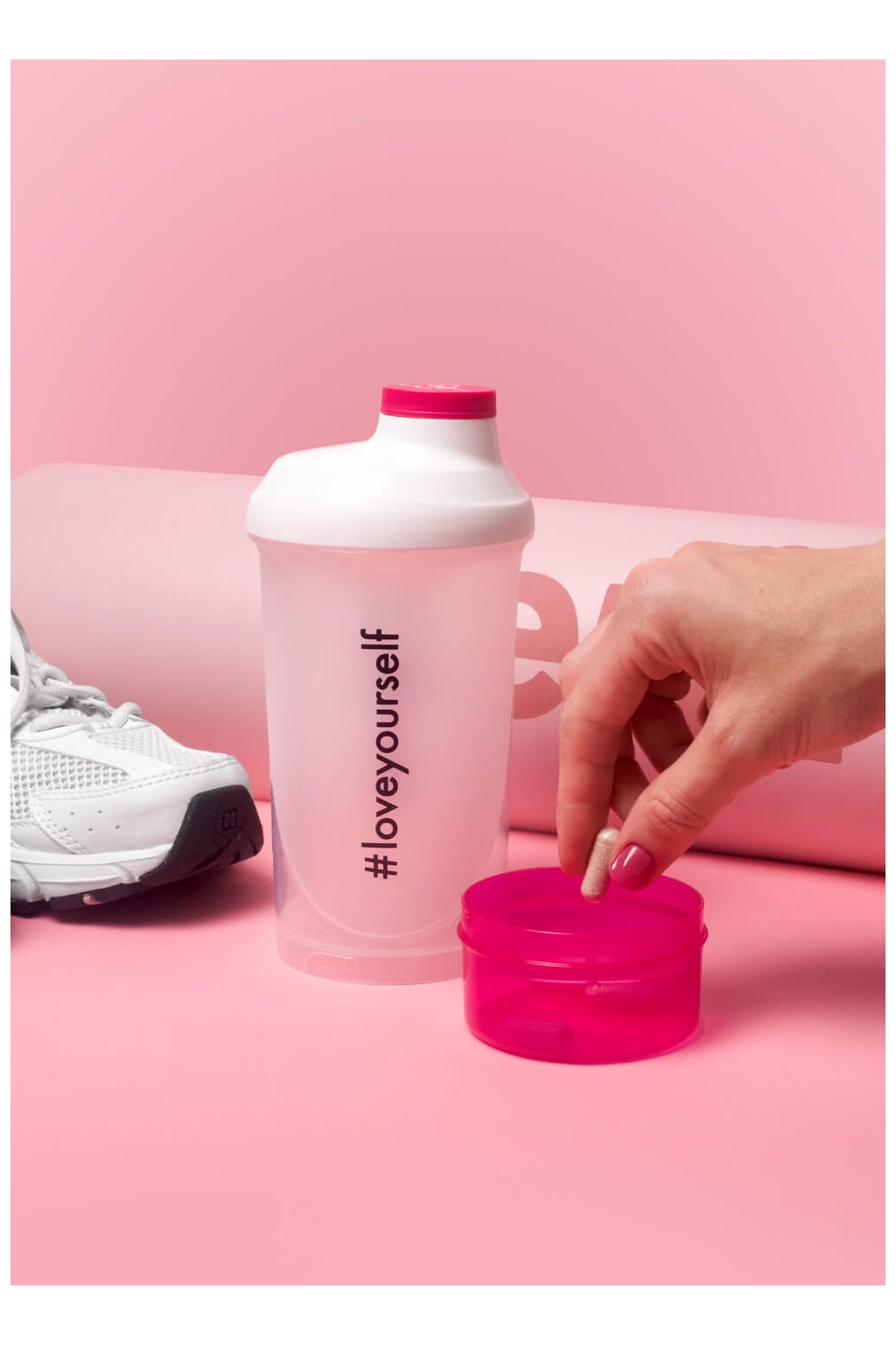 VENIRA shaker se zásobníkem, bílo-růžový, #loveyourself 500 ml + 150 ml