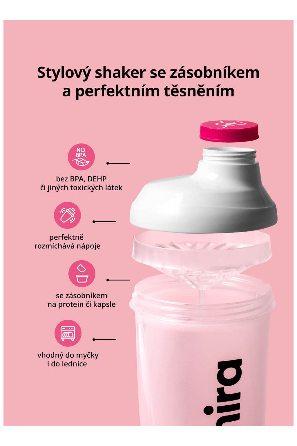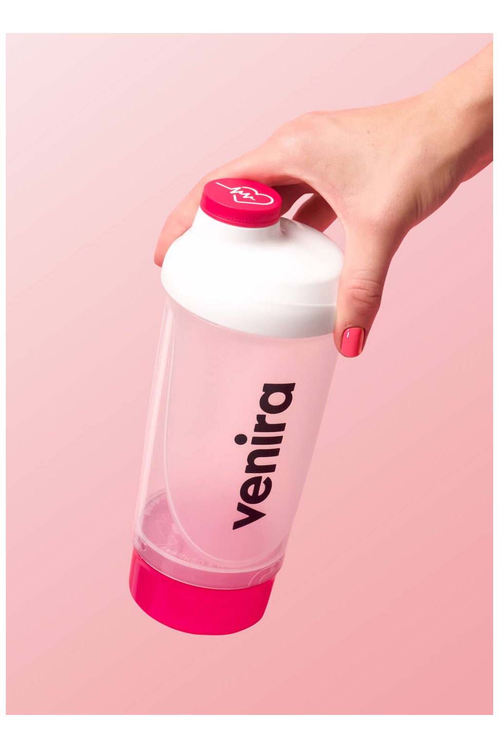 VENIRA shaker se zásobníkem, bílo-růžový, #loveyourself