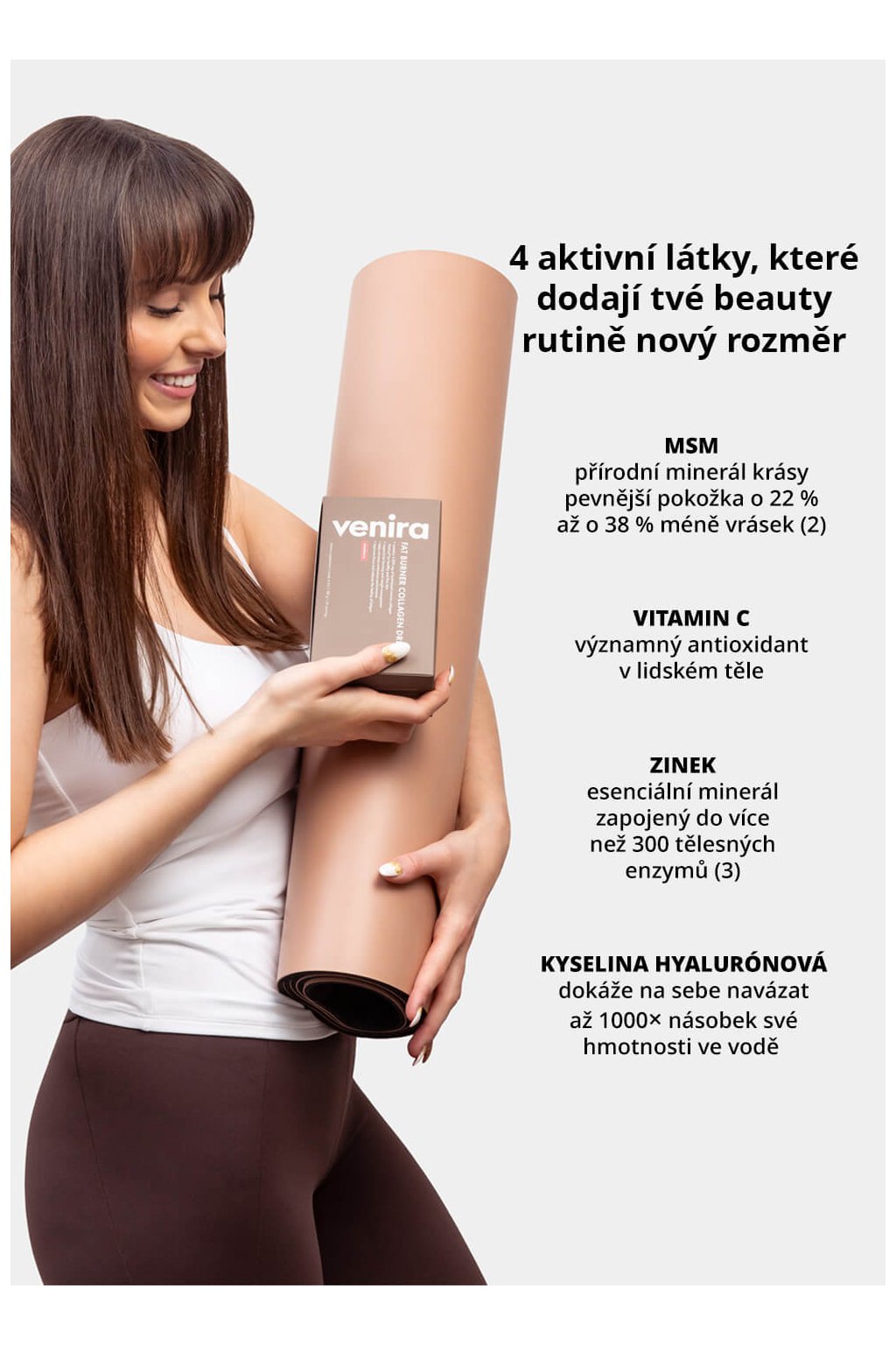- dále obsahuje beauty složky v podobě MSM, kyseliny hyaluronové a zinku, který podporuje udržení normálního stavu pokožky, vlasů a nehtů