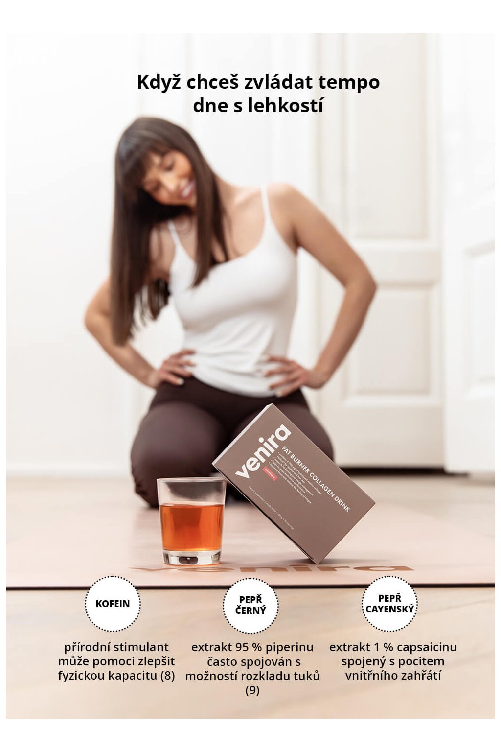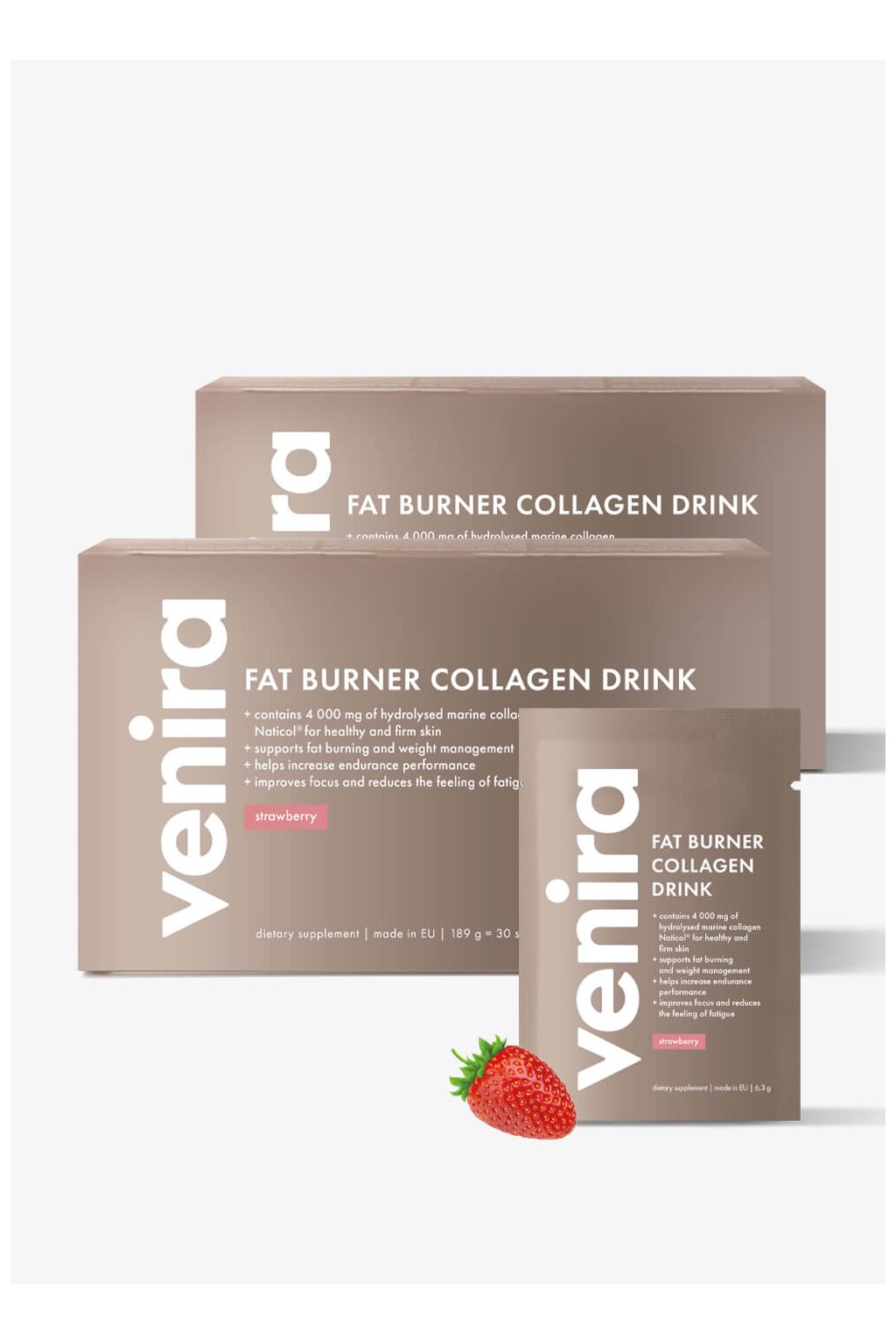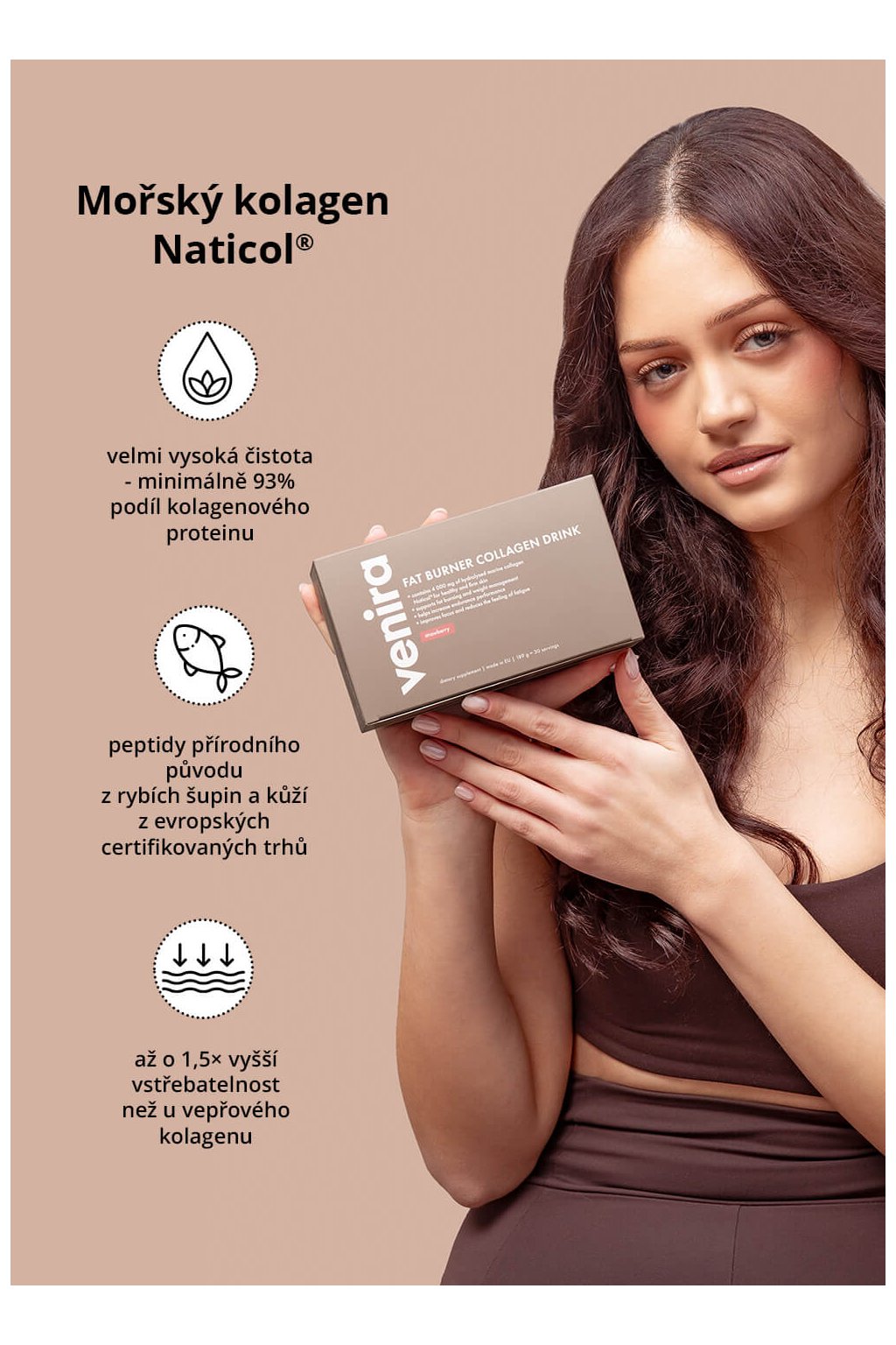 VENIRA spalovač tuků + kolagen drink jahoda, mořský kolagen, 60 sáčků, 390 g