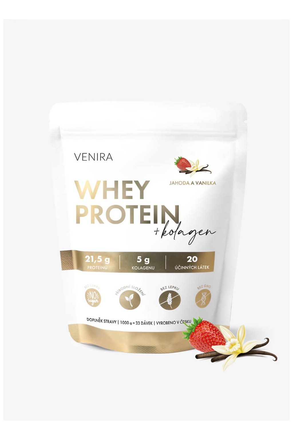 VENIRA beauty whey protein s kolagenem jahoda-vanilka, 1000 g
